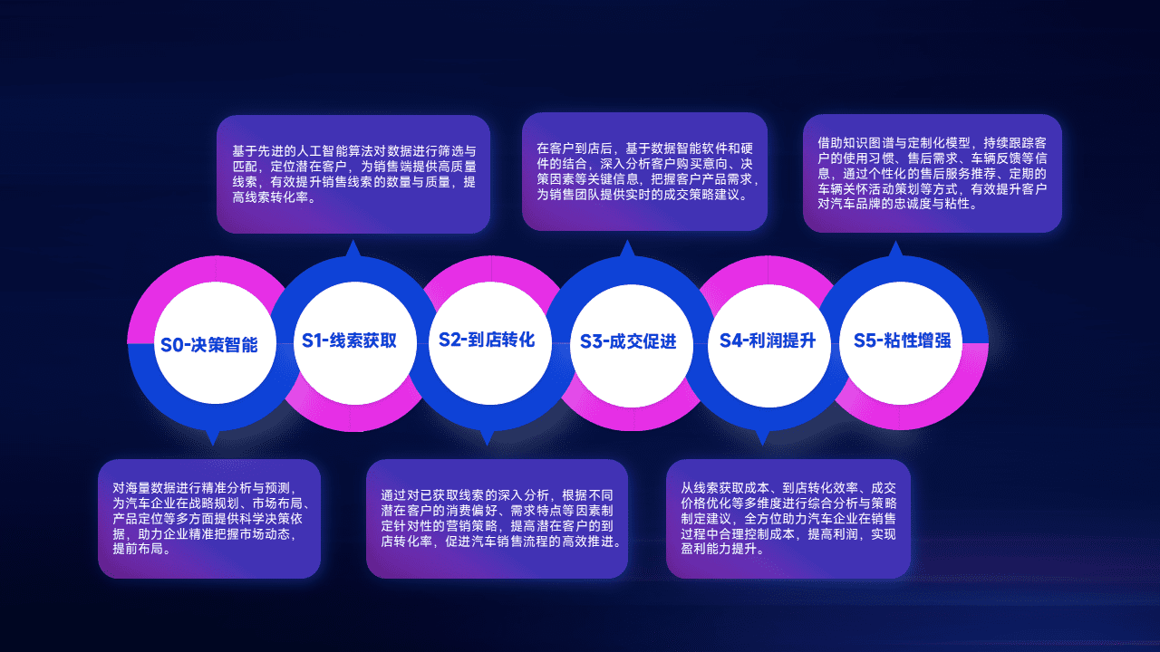 通过拓宽潜在客户来源、、优化线索分配并提高到店转化率,,以增强销售效率。。。同时,,利用线索数据不断优化分析模型,,,有效提升转化率,,扩大营销影响力。。